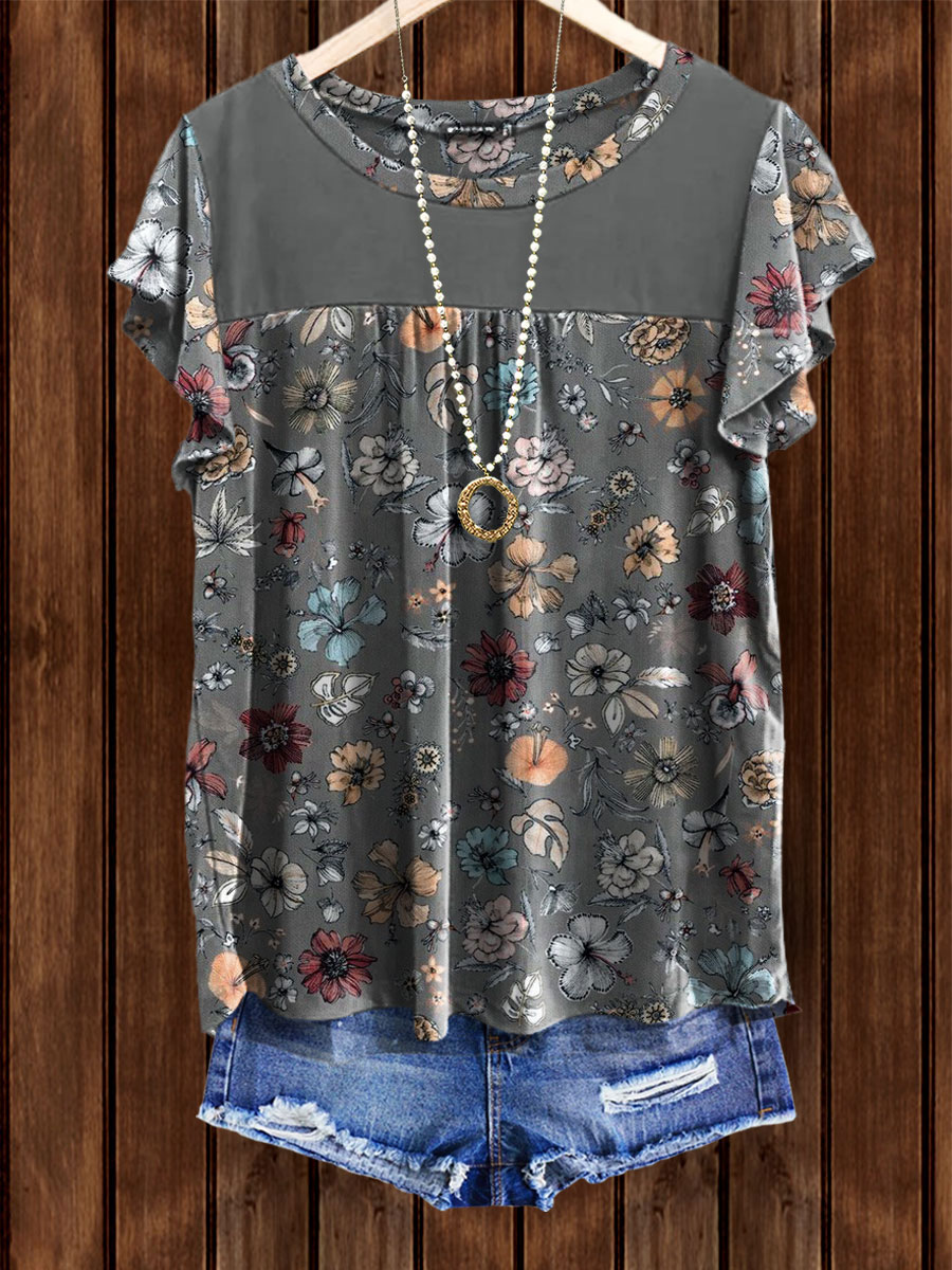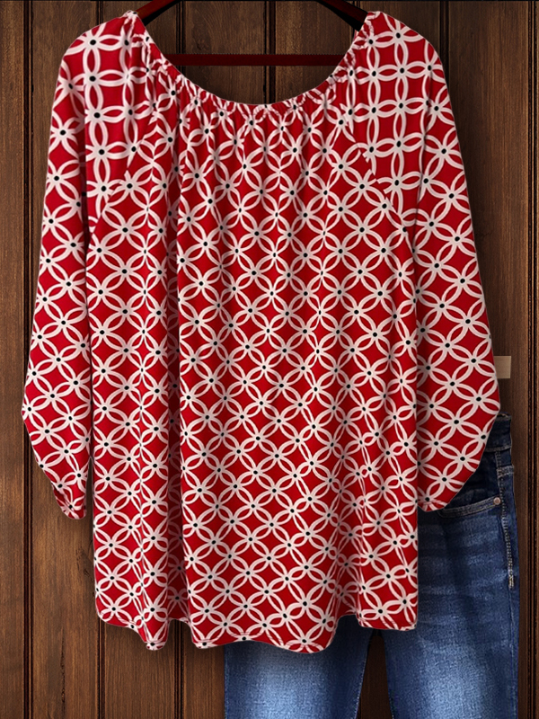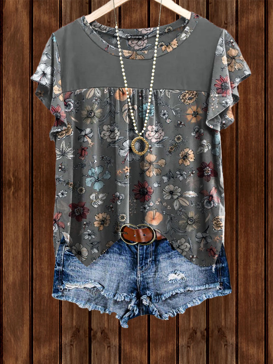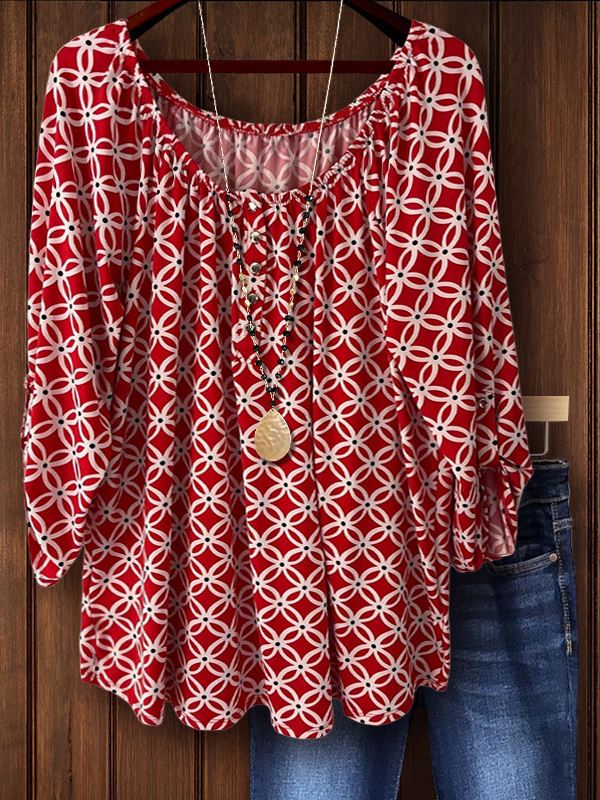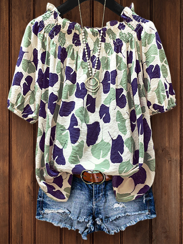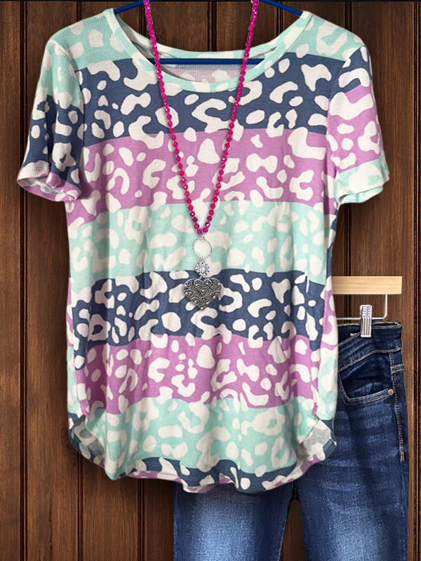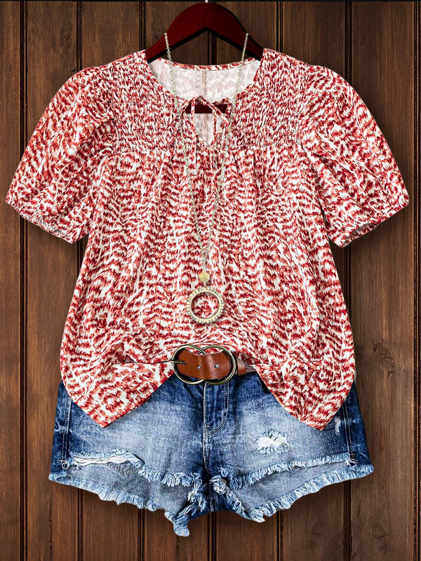 PRINT ELASTIC CREW NECK TOP