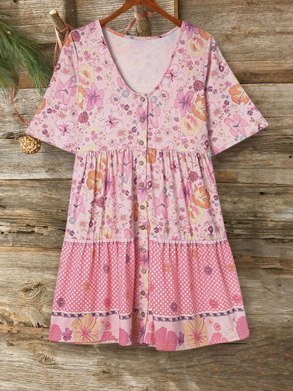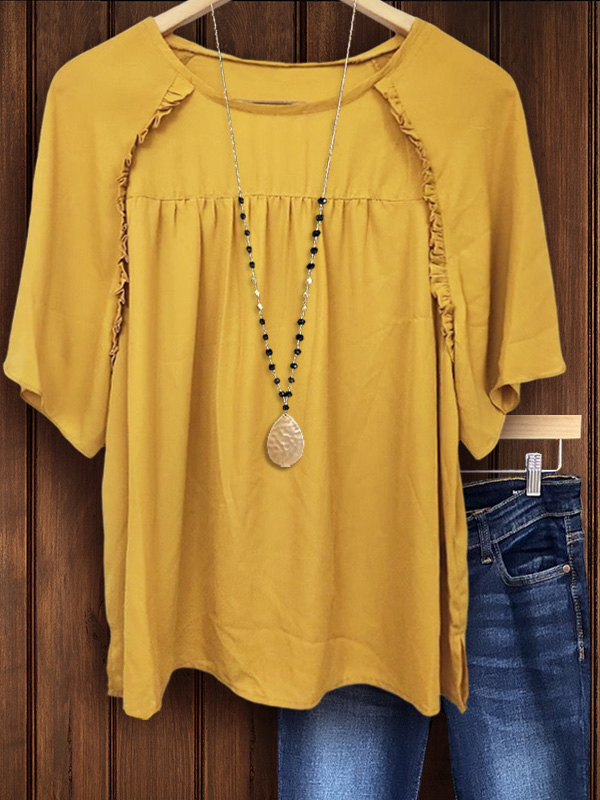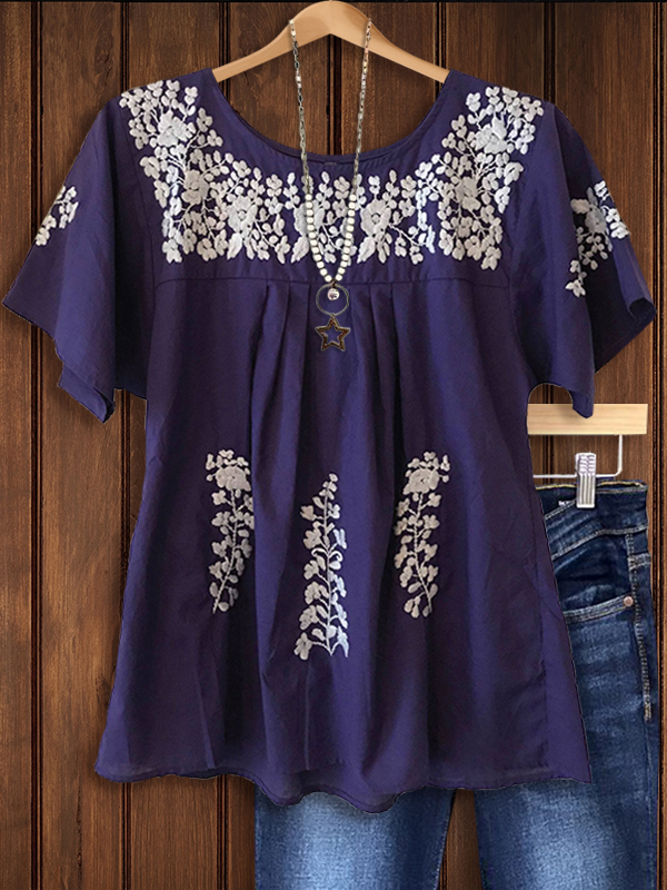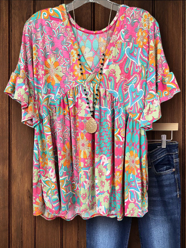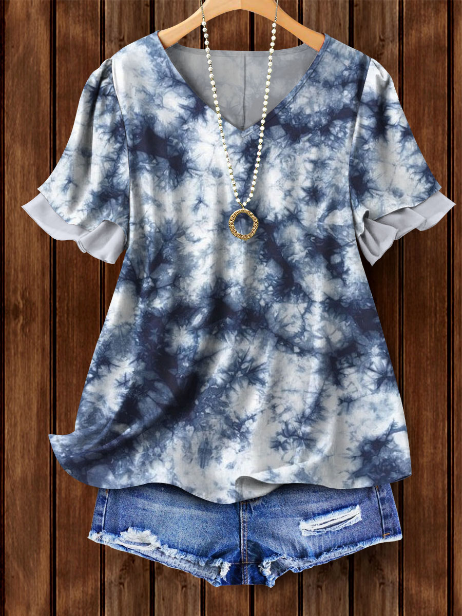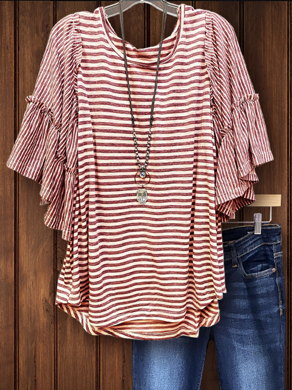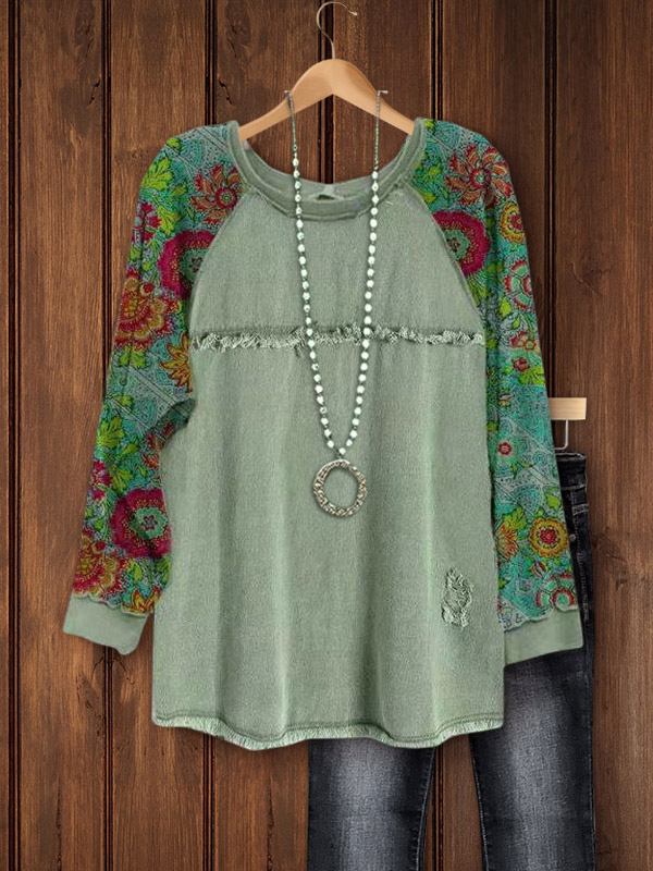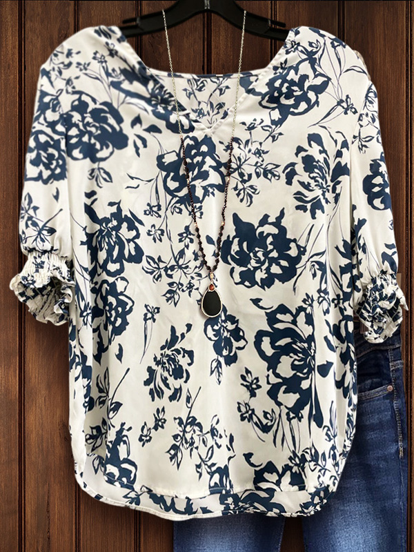 PRINT ELASTIC CREW NECK TOP