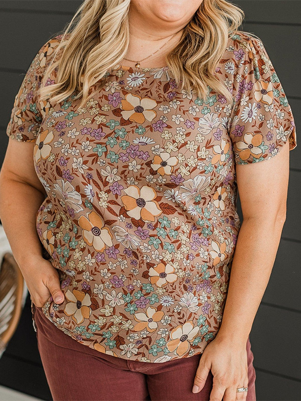 This is a great piece for summer. The romantic khaki natural floral print design adds a touch of casual romance. Puff sleeves and draped fabric combine perfectly. The relaxed silhouette is perfect for everyday wear and will enhance your style.
