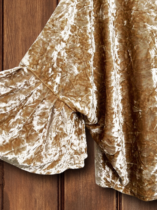 This top features velvet fabric and trendy bell sleeves, adding a touch of sophistication to any outfit. The soft and comfortable material makes it perfect for both casual and formal occasions. this top is a must-have for fashion-forward women.