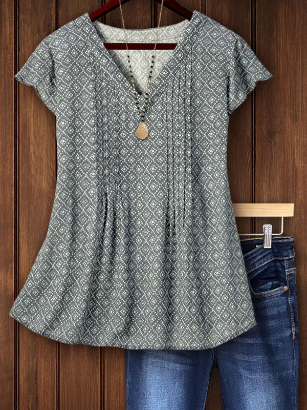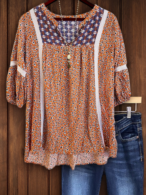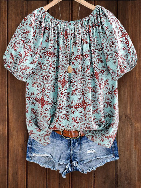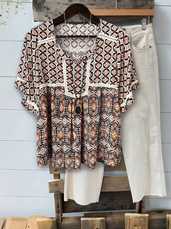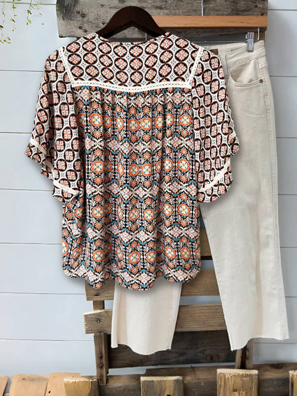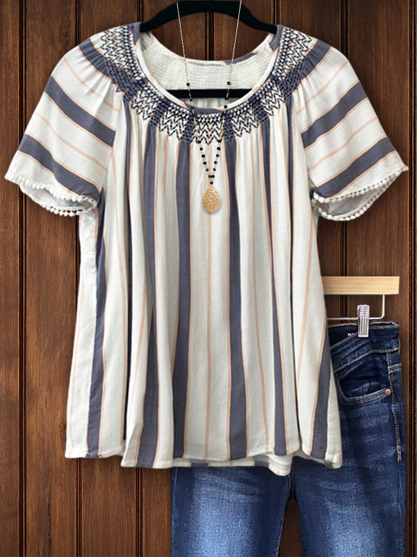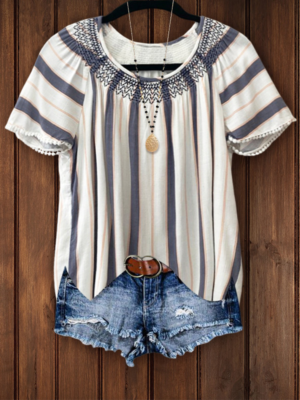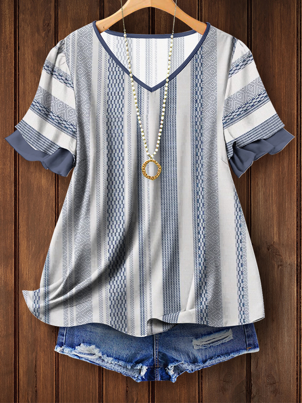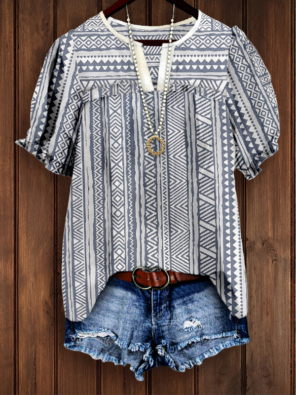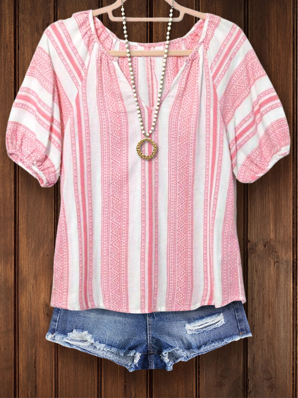Ethnic Stripes V Neck Raglan Sleeve Blouse