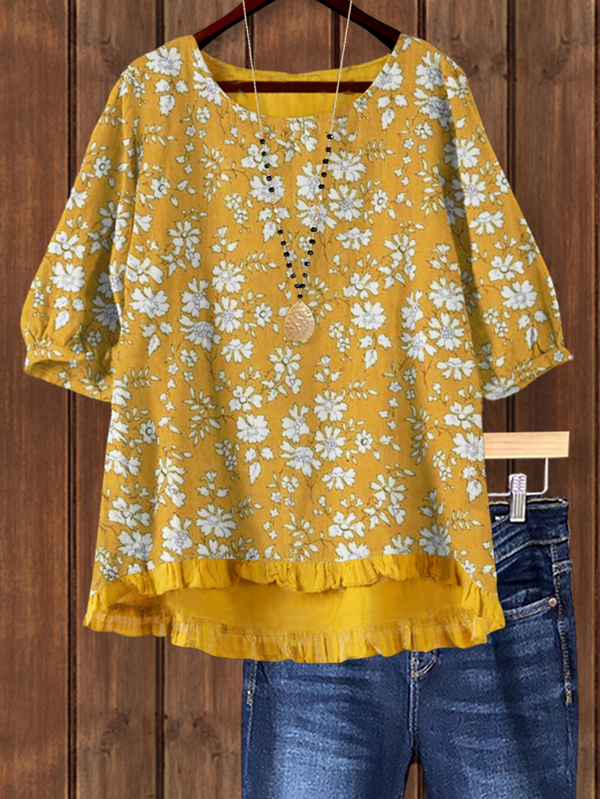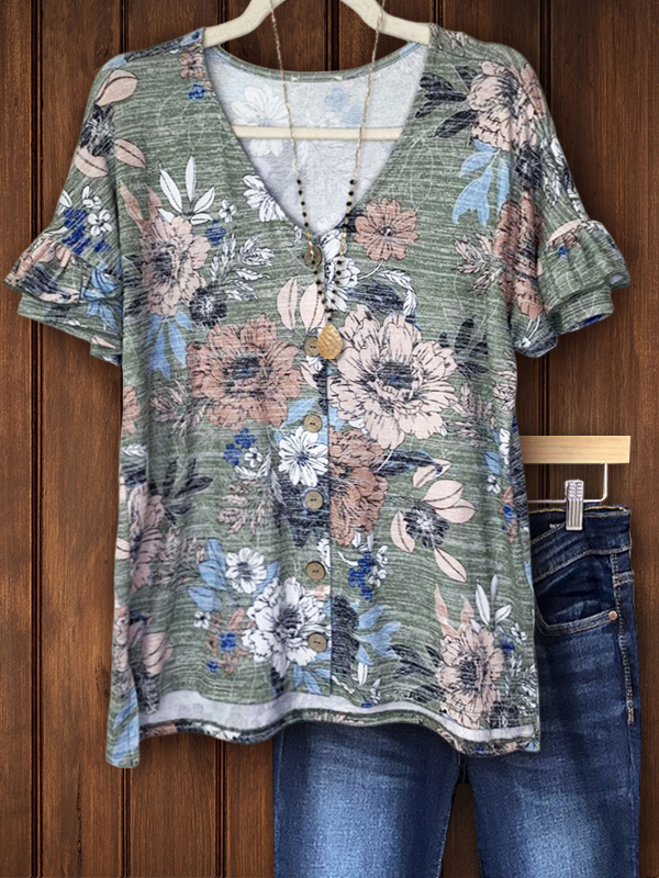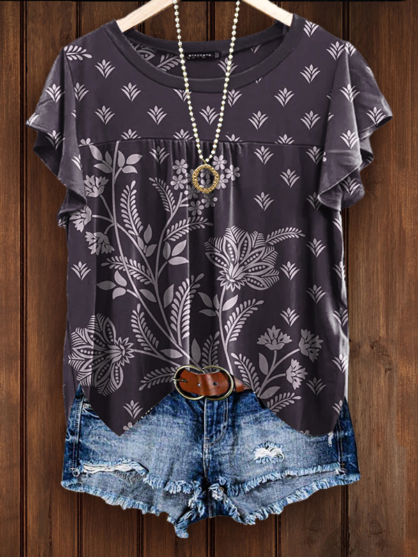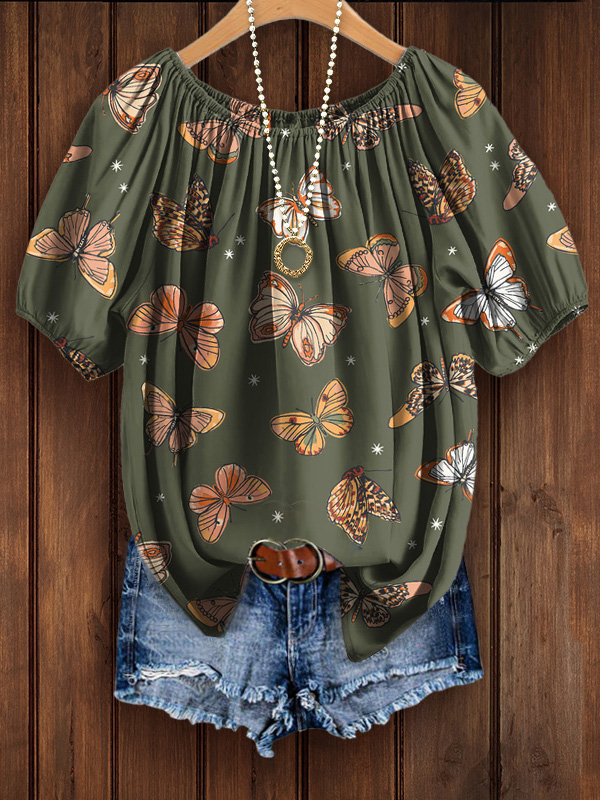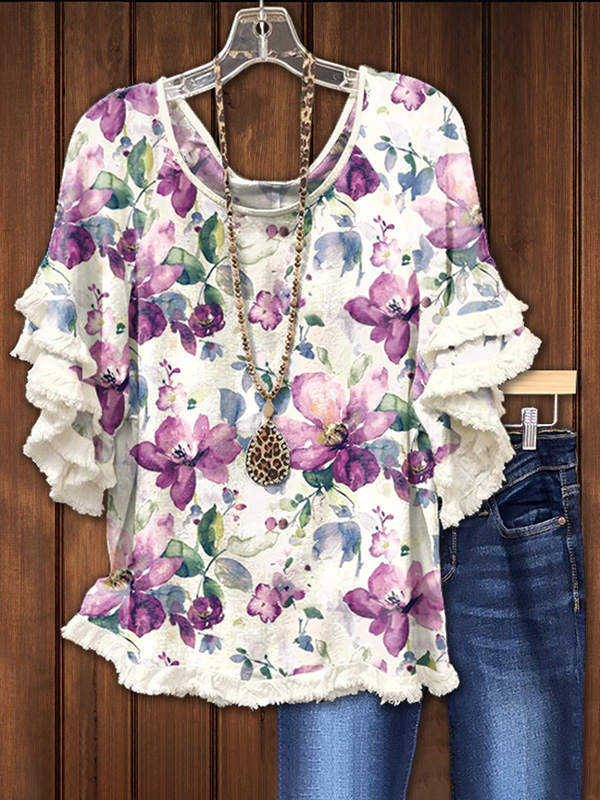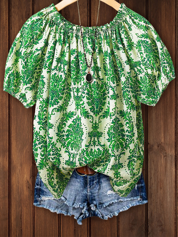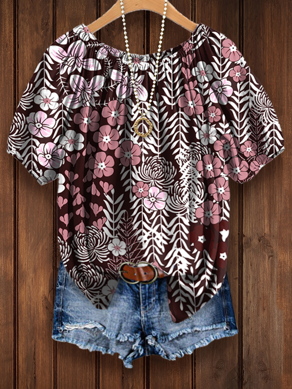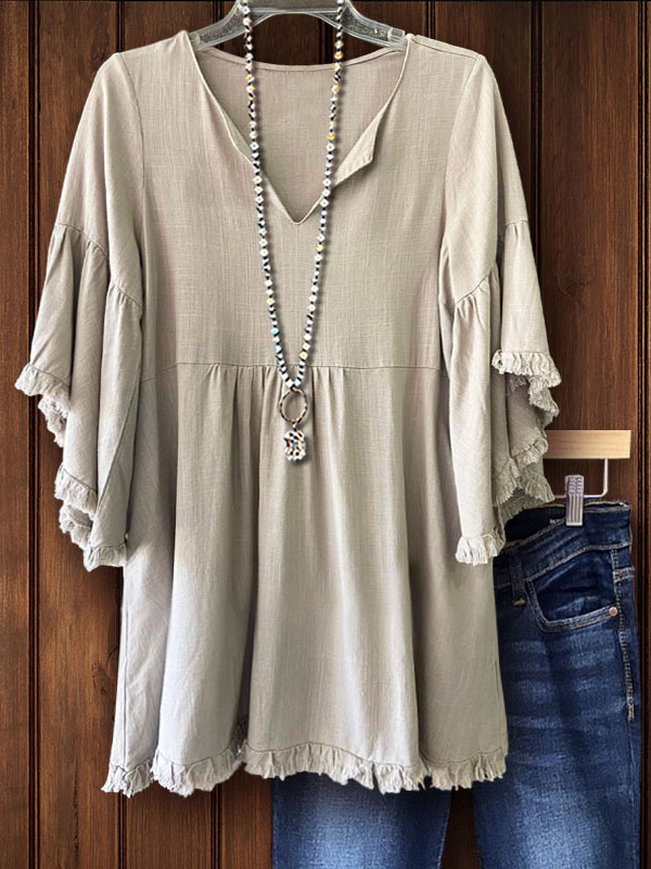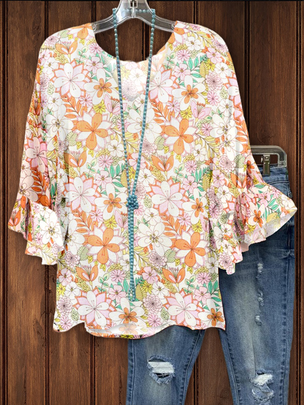 Ethnic Stripes V Neck Raglan Sleeve Blouse