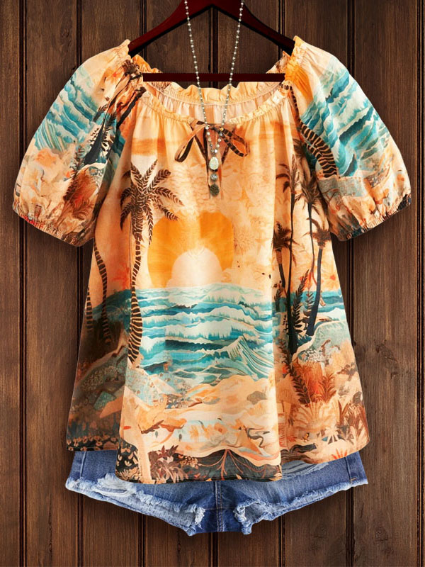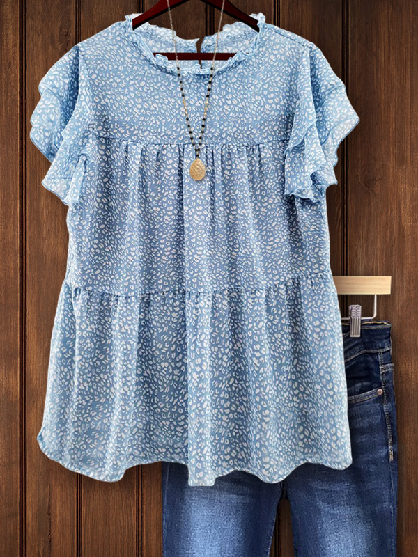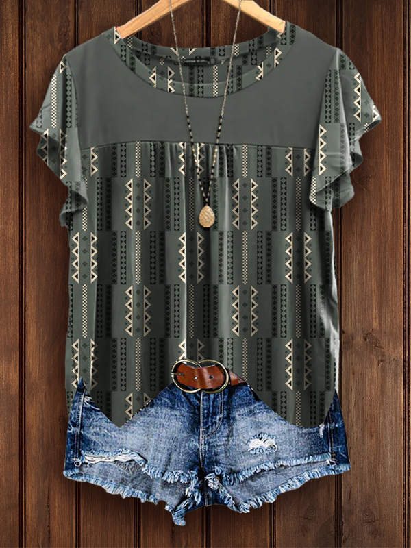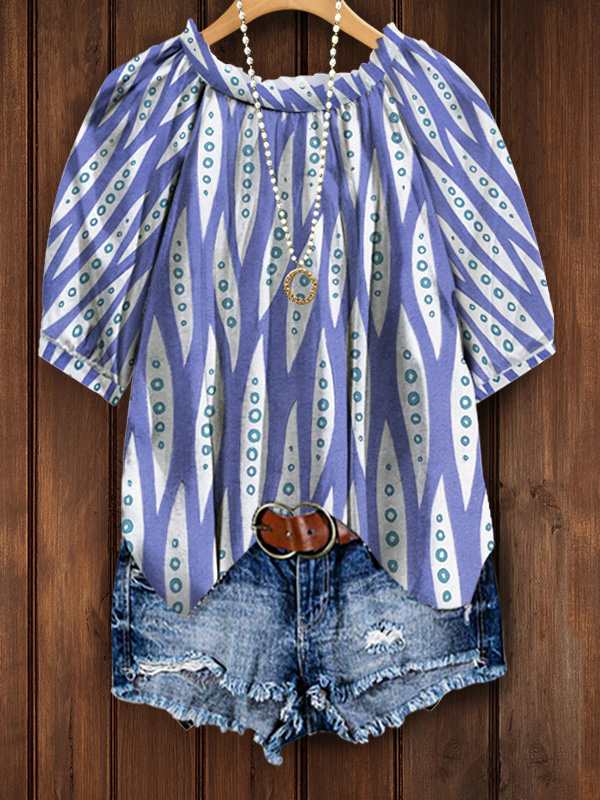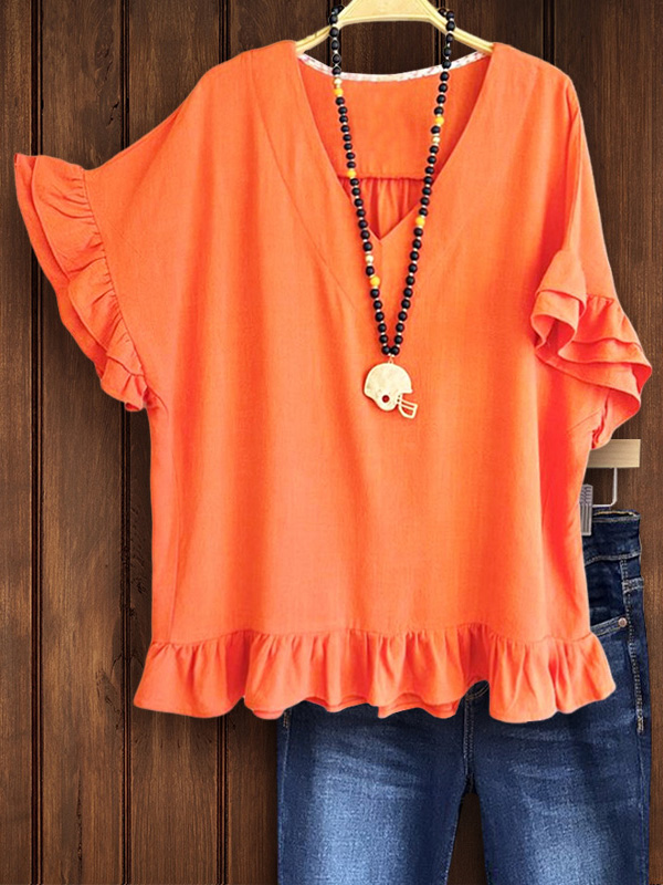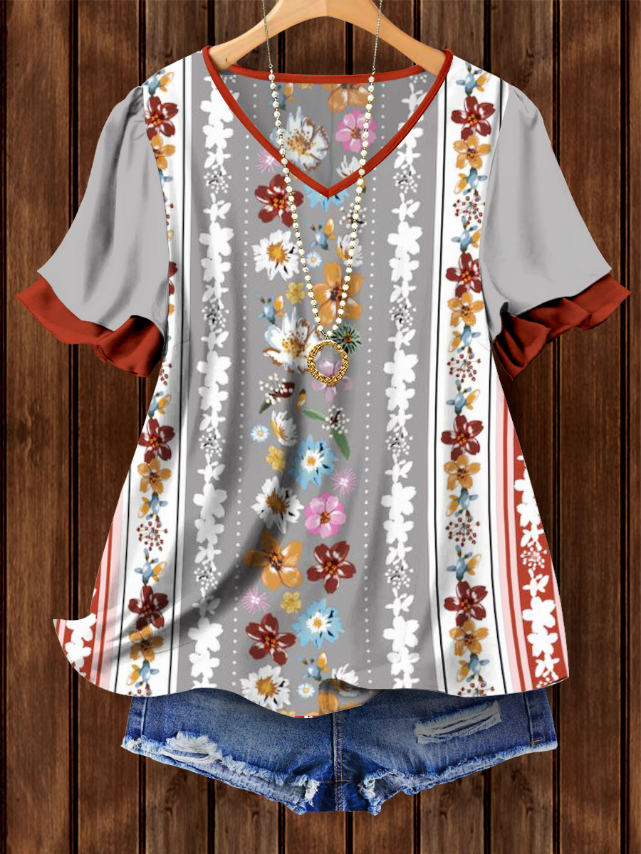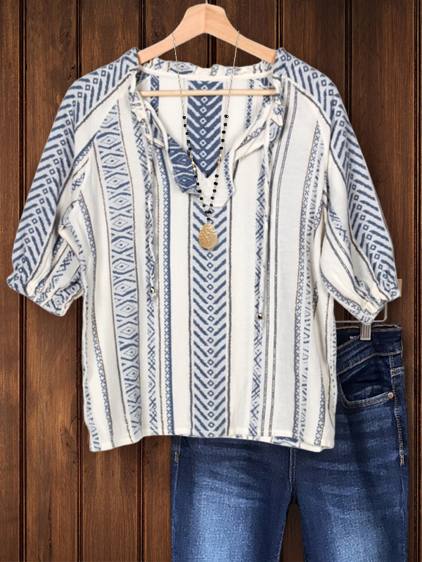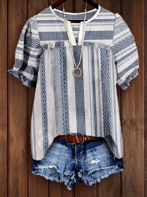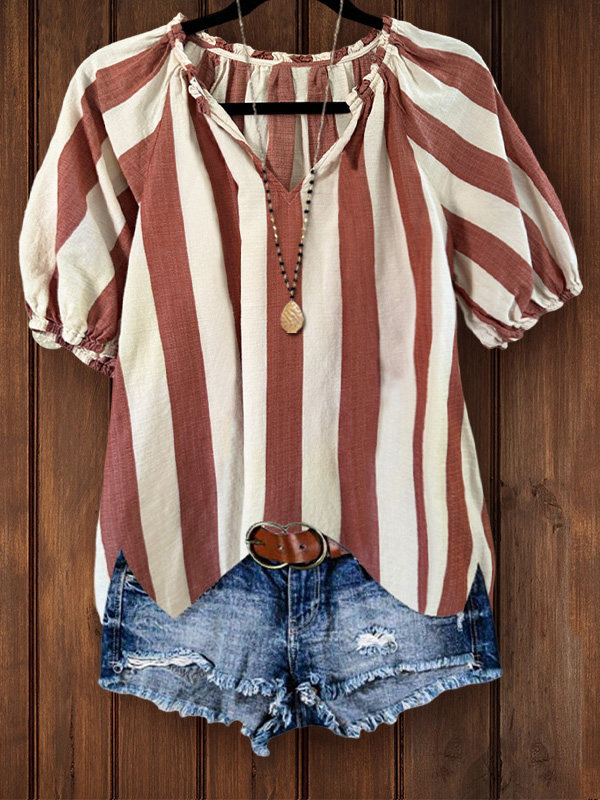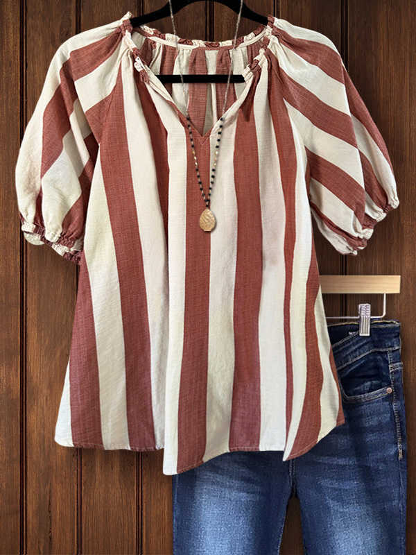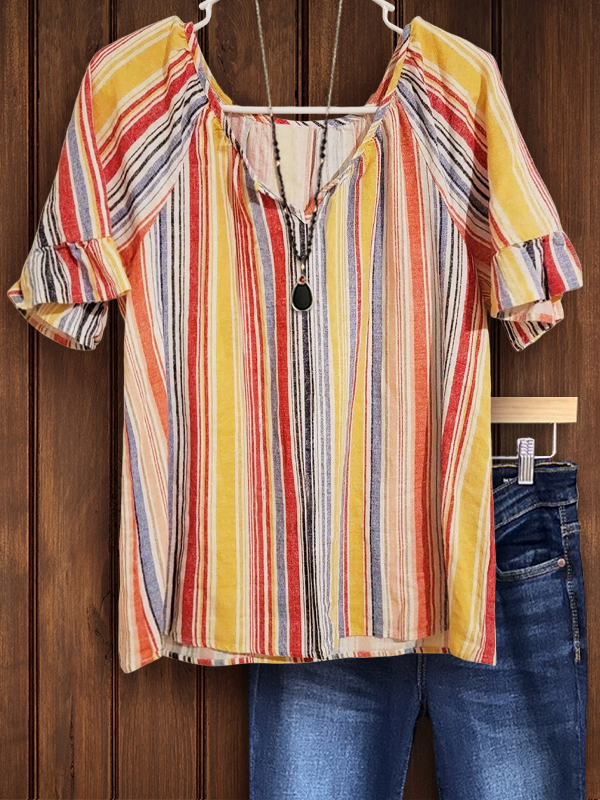 Cotton Colorful Stripe Ruffle Sleeve Blouse