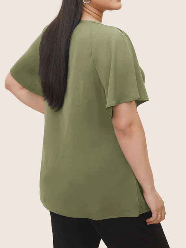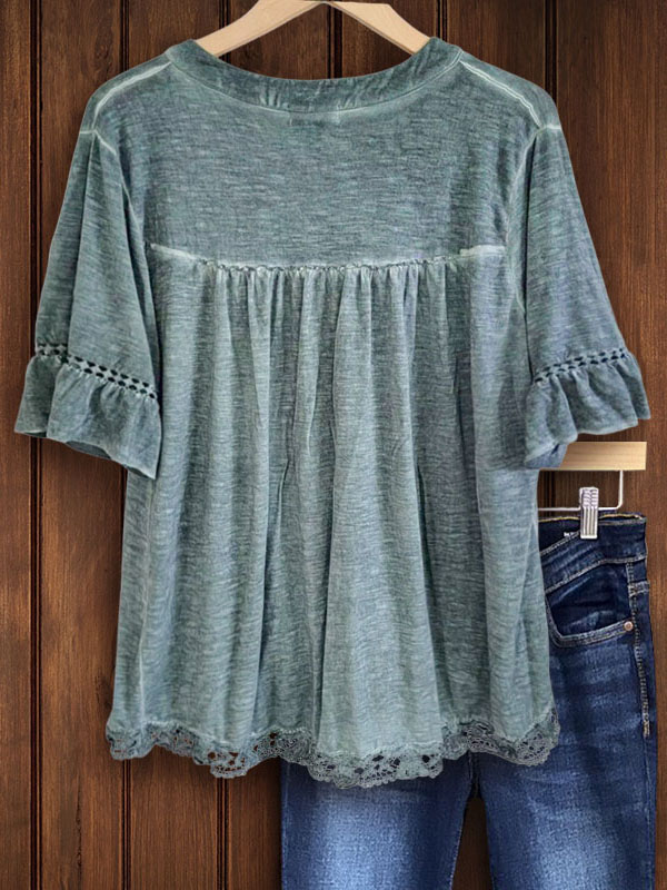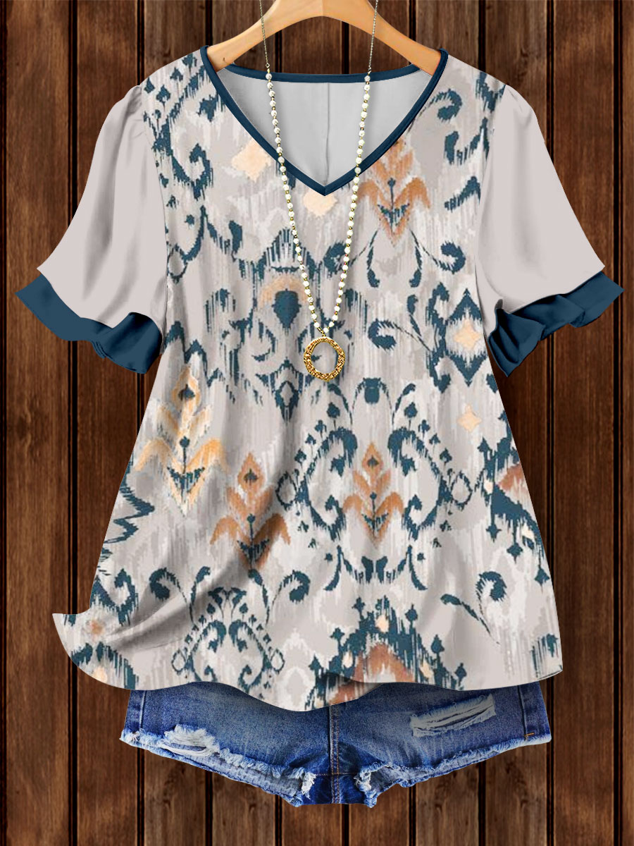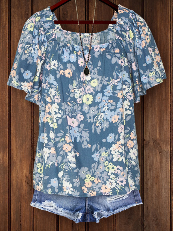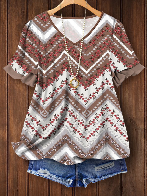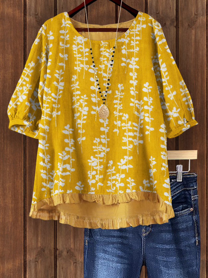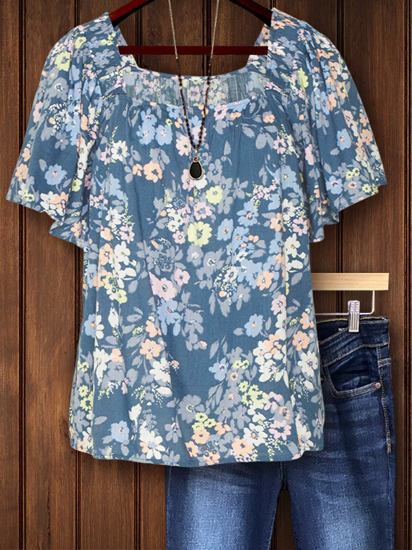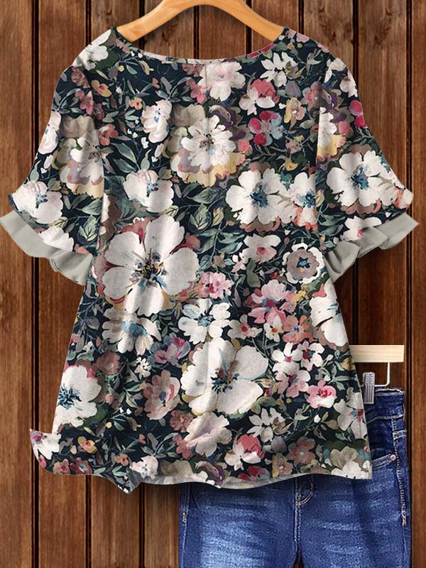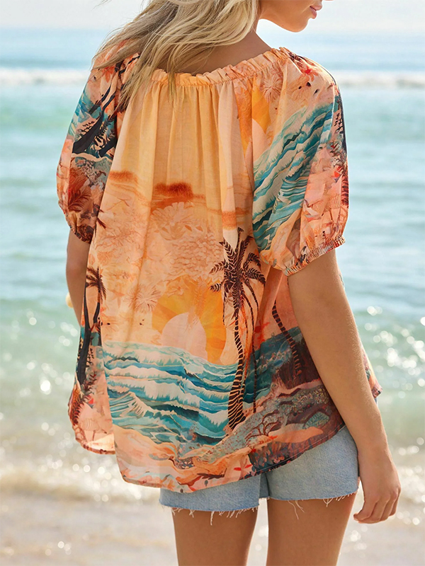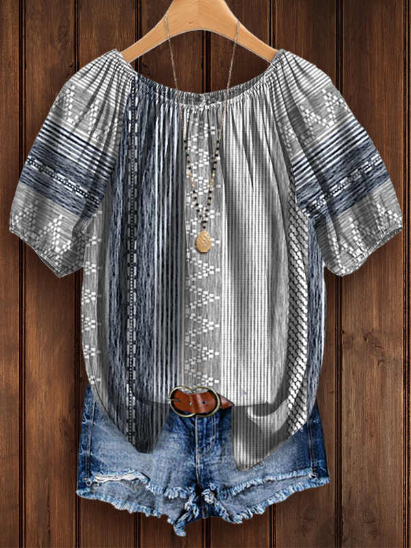 Cotton Colorful Stripe Ruffle Sleeve Blouse