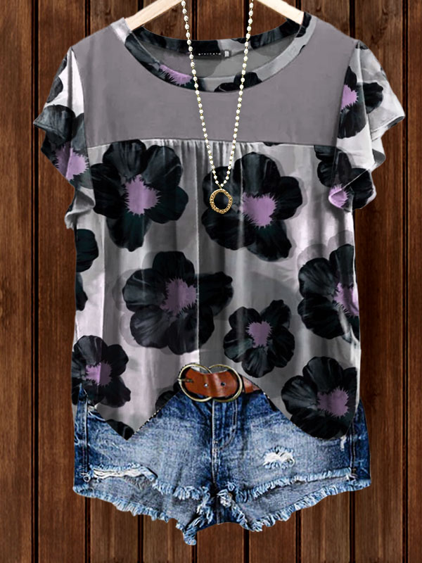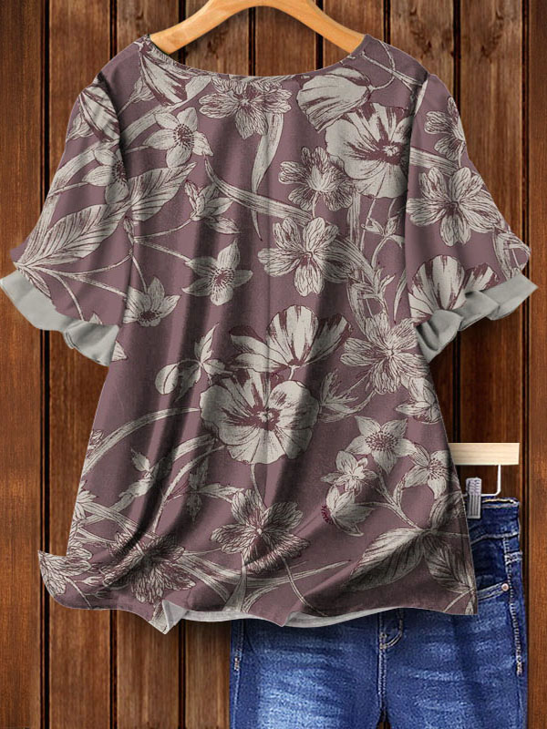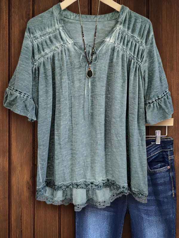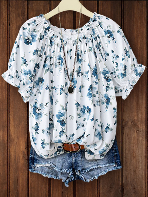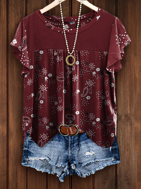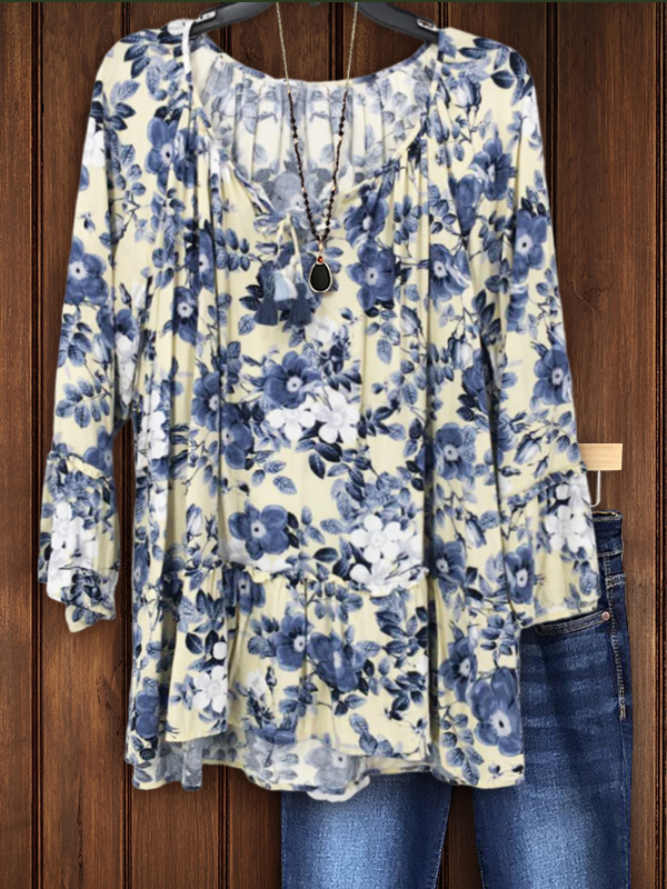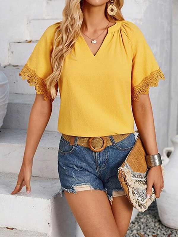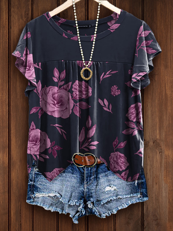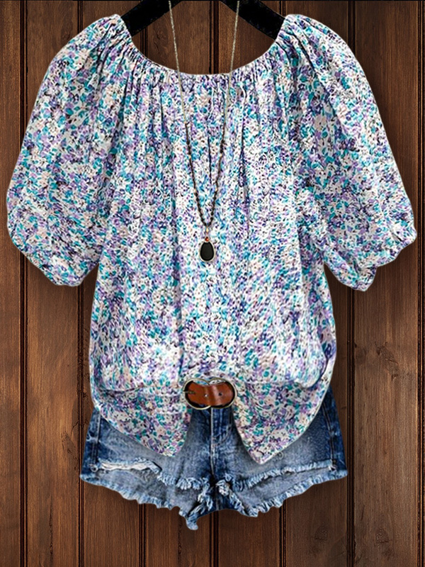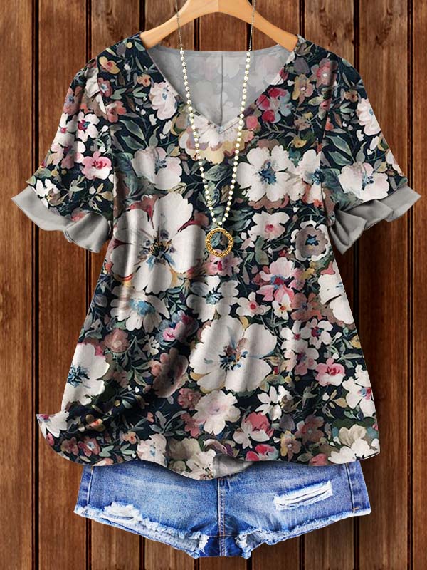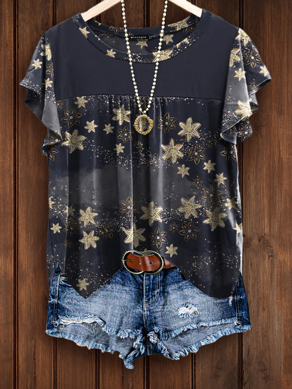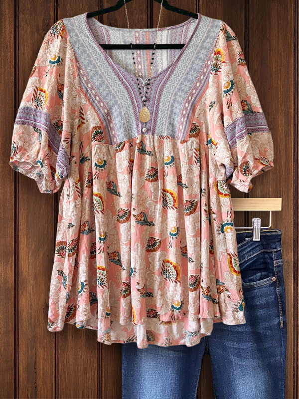 Cotton Colorful Stripe Ruffle Sleeve Blouse