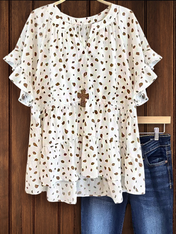 This animal print layered hem top ensures style and comfort. The layered hem and trendy animal print are playful yet classic, the notched V-neck and ruffles blend perfectly, and the breathable soft cotton blend ensures comfort and coolness.