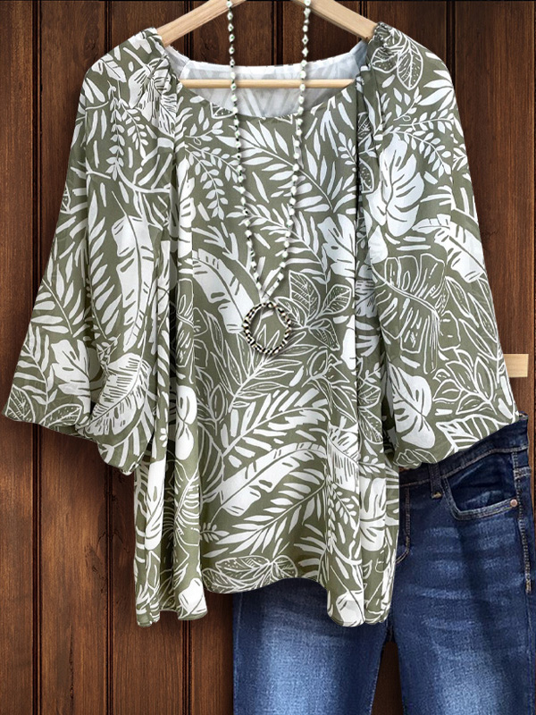Embrace the beauty of nature in our botanical print mid-sleeve top. A stretchy botanical print adds a touch of freshness and ease to this loose silhouette. Puff sleeves create a flattering, feminine look. Wear it with jeans for a chic, effortless look. Owning it will become a fashionable and versatile item in your wardrobe.
