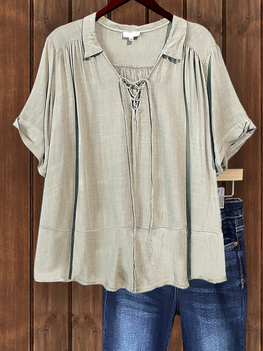 Crafted from a blend of cotton and linen, the blouse offers a perfect balance of comfort and durability. This fabric combination also gives the blouse a natural and slightly textured appearance adding to its refined charm. The strappy design involves additional thin straps across the neckline creating an eye-catching and modern detail.