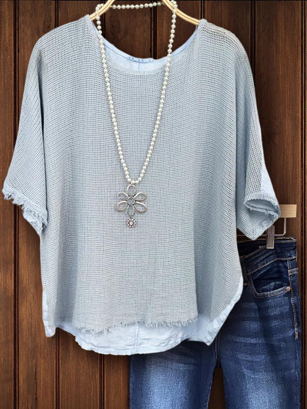 Stay cool and casual in our casual mesh patchwork mid-sleeve top. Mesh paneling details add a modern twist to this classic silhouette, and the fabric is a soft, skin-friendly cotton blend perfect for adding an edge to your everyday looks.