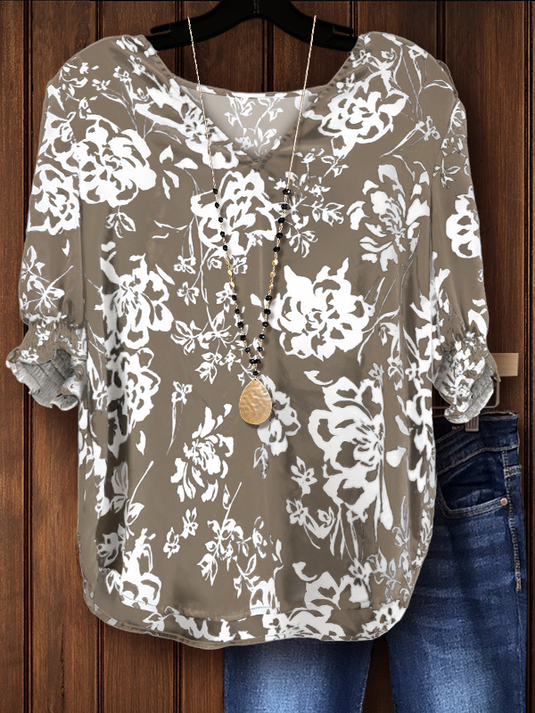 Stay elegant and comfortable with this floral print top. The white floral print and smocked cuff details make this top a versatile and chic addition to your wardrobe. The fabric is a lightweight and comfortable cotton blend material, making it easy to wear without restriction.