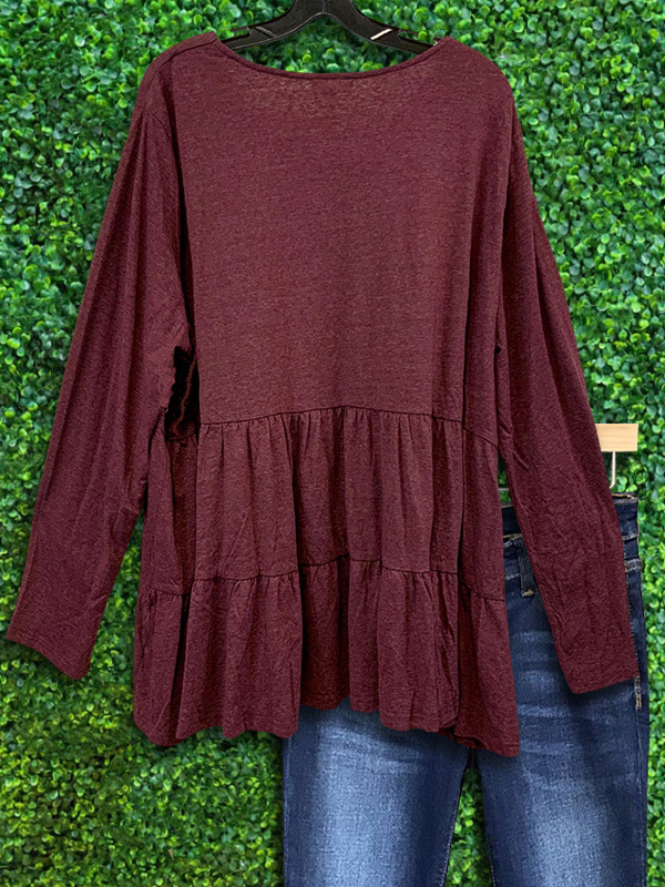 Add a feminine touch to your wardrobe with this Casual Ruffled Hem Top. The ruffled hem detail adds a unique and stylish element, making it a perfect choice for both casual and dressier occasions.