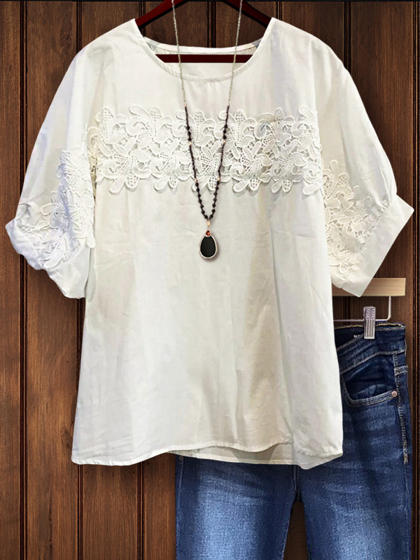 This top is made from high-quality solid cotton. The classic loose silhouette is trimmed with lace, visually adding a unique touch of chic. The white color is versatile and simple, this is a must-have casual white shirt that can be worn by everyone in any occasion.