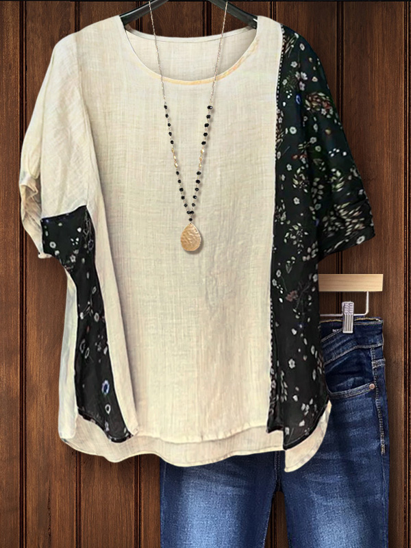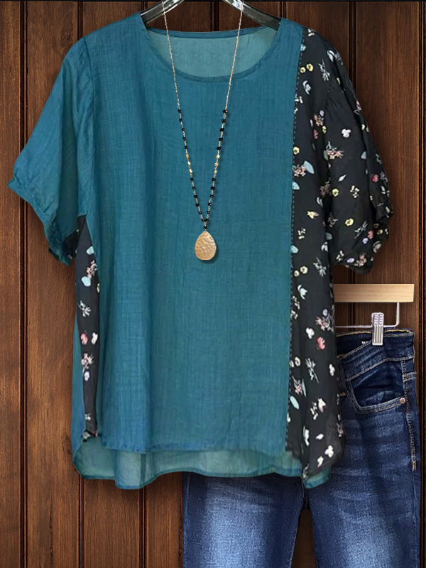 Made from breathable cotton and linen, this top features floral patchwork details that look stylish and versatile. The loose fit perfectly blends with dolman sleeves and a round neck design. It is very suitable for summer and can be paired with your favorite blue denim shorts or casual pants every day.