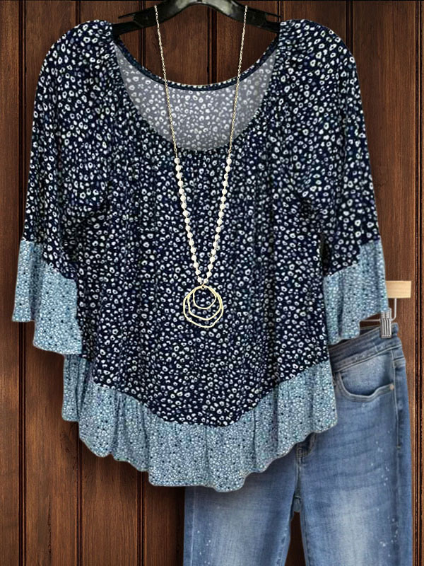 This paneled animal print top has a ruched, flowy silhouette and draped soft fabric for a more inclusive look. Cute animal prints and contrasting patchwork details add a touch of retro chic. Wear yours with fitted blue jeans.