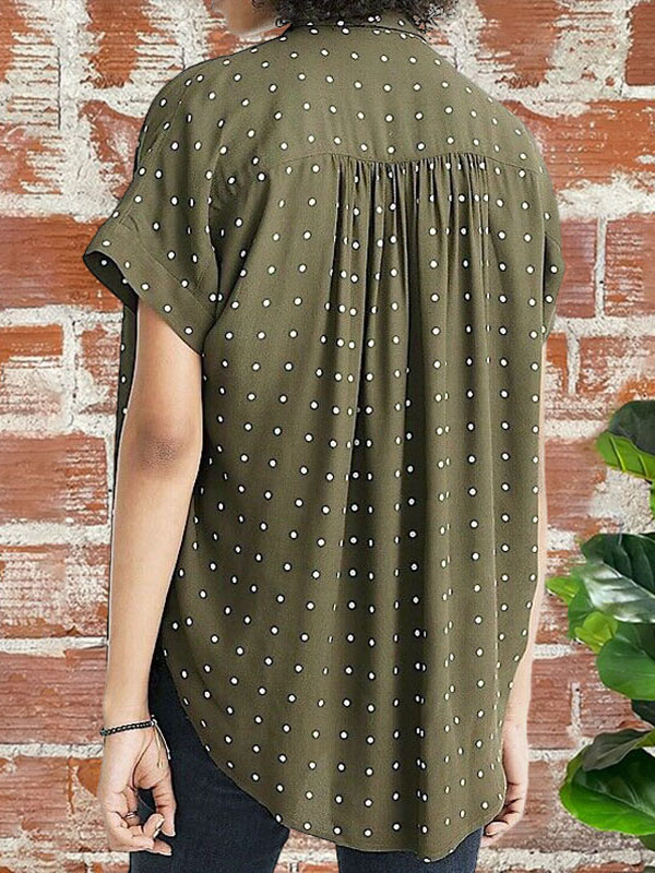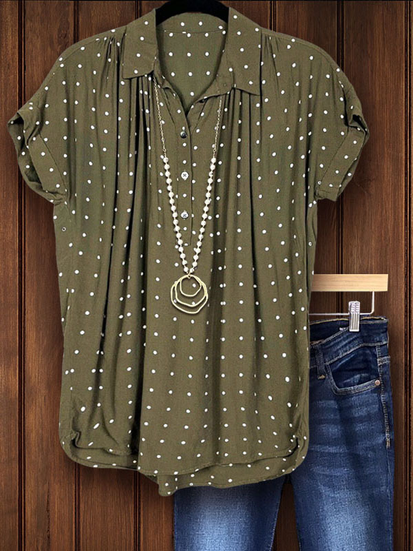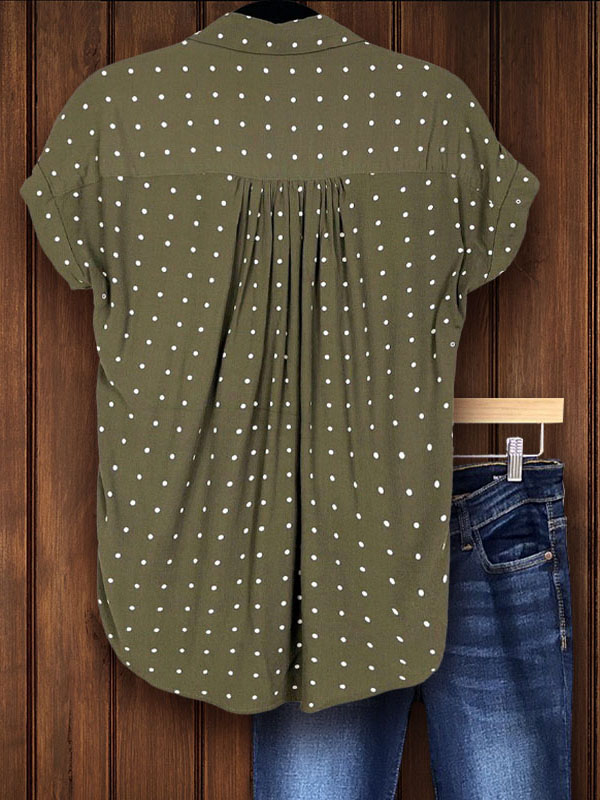 This shirt is the best choice for office and daily wear. This shirt is made from a soft, draped cotton blend with a classic vintage polka dot print. It features a pleated, elegant silhouette and a formal shirt collar for a striking contrast. Featuring a high-end military green hue, this shirt is the perfect combination of style and comfort.