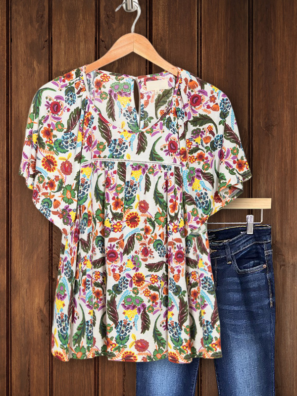 The Floral Print Paneled Babydoll Top is a sweet and charming garment that features a delicate floral print and a flattering babydoll silhouette. The top is designed with multiple panels that add texture and depth to the piece. This top is perfect for creating a romantic and whimsical look and is a great choice for both casual and dressy occasions.