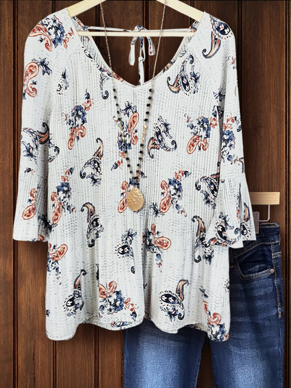 This floral print top is made from a pleated textured fabric that's soft to the touch and features sweet ruffled cuffs. The V-neck design on the front and back necklines and the chic cashew flower print add a touch of feminine charm, making it the best choice for the cool season.