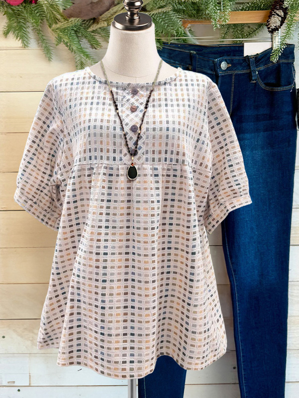 Crafted from a premium cotton blend, this casual top features puff sleeves and a babydoll silhouette for a playful feel. It has button detailing on the front and a classic crew neckline, making it perfect for everyday use to enhance your style.