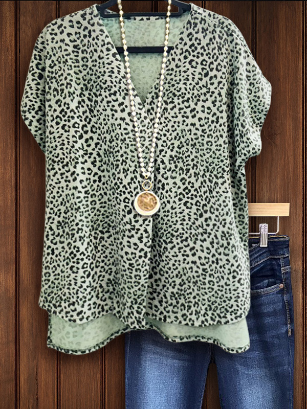 This leopard print shirt exudes a charming feminine touch and the fabric is soft and comfortable to the touch. The short front and long back hem design is fashionable and eye-catching. It's suitable for any occasion. The casual style is perfect for a date with good friends on a warm summer day!
