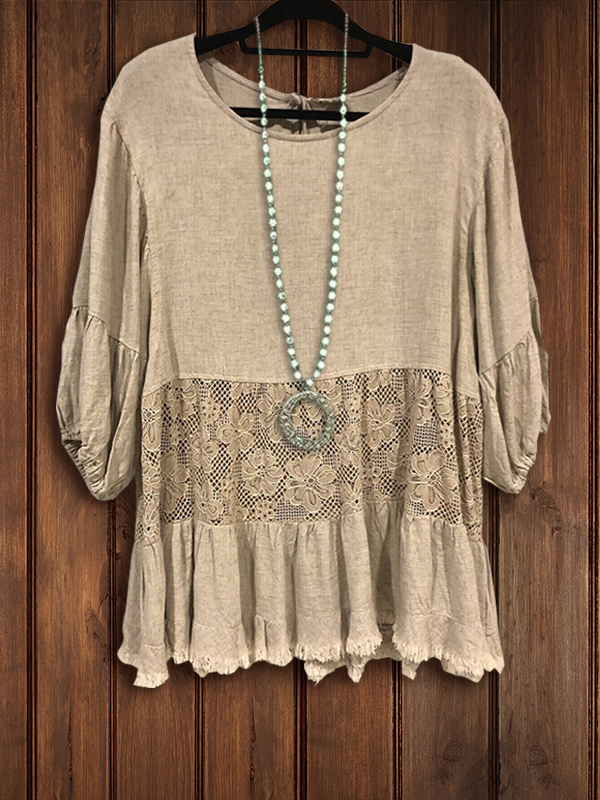 If you're looking for a stylish and comfortable top, look no further than this Linen Tunic Top With Lace Details. This top is a classic and versatile piece that you can wear for any occasion. It features a linen fabric, a round neckline, and lace details that add some elegance to your look. You can wear it with jeans, leggings, or a skirt for a chic and cozy outfit. This top is also easy to wash and dry, making it a great choice for your wardrobe. Don't hesitate and order this lovely top today. You'll love how you look and feel in this linen tunic top!