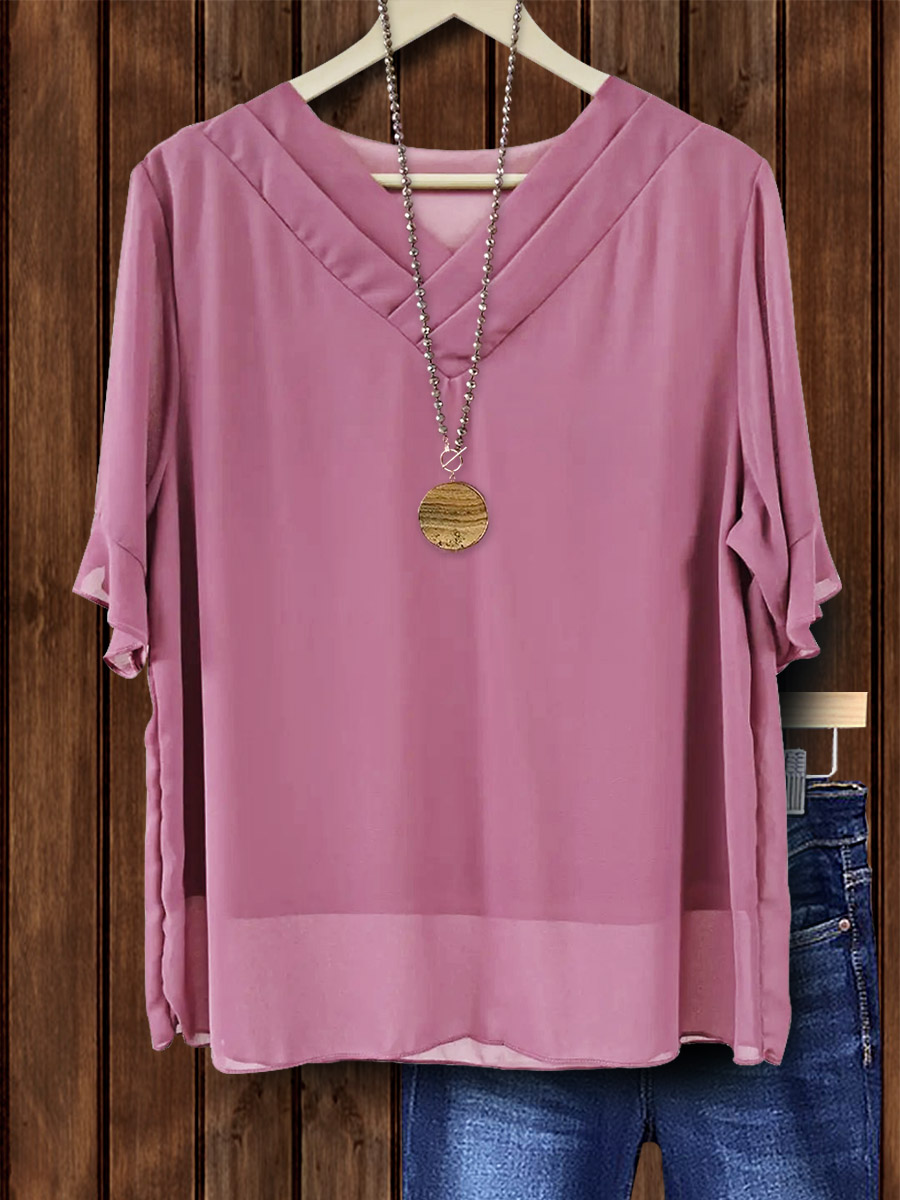This top features a chic double-layered v-neck design that perfect for adding an edgy touch to your wardrobe. The soft cotton fabric is perfect for summer. It's a versatile piece for both formal and casual occasions.