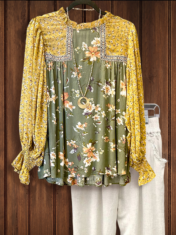 The Mixed Floral Print Patch Top is a vibrant and eye-catching garment that combines different floral prints in a patchwork design. With its relaxed fit and unique pattern, this top is perfect for adding a pop of color and personality to your everyday look.