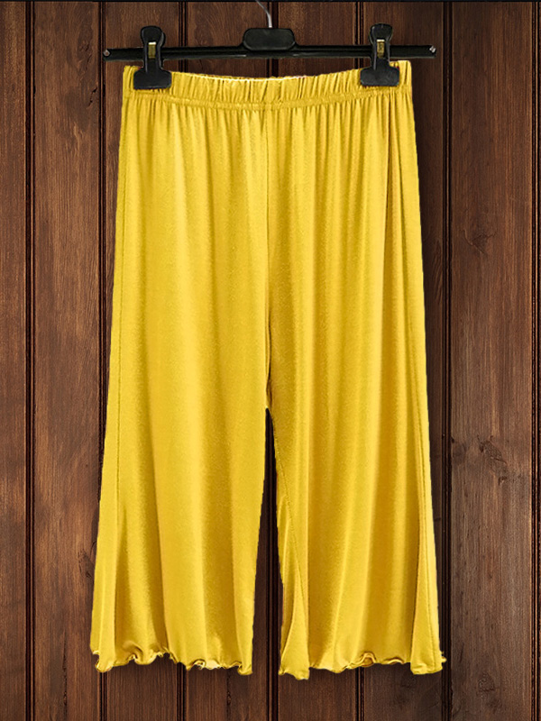 This unique pair of pants is made of modal fabric, which is very soft and skin-friendly. The ruffle design at the hem adds a playful vibe. The knee-length allows you to move freely, making it perfect for wearing at home!