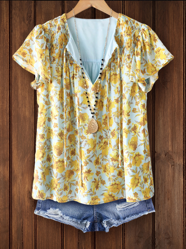 Our Natural Print Smocked Lace-Up Collared Blouse blends casual comfort with feminine flair. Featuring a charming natural print and delicate Smocked detailing, this blouse exudes effortless charm. The relaxed fit ensures all-day comfort, while the lightweight fabric is perfect for warm Southern days. Pair it with jeans or shorts for a playful yet stylish look, perfect for a day out with friends or a leisurely stroll.