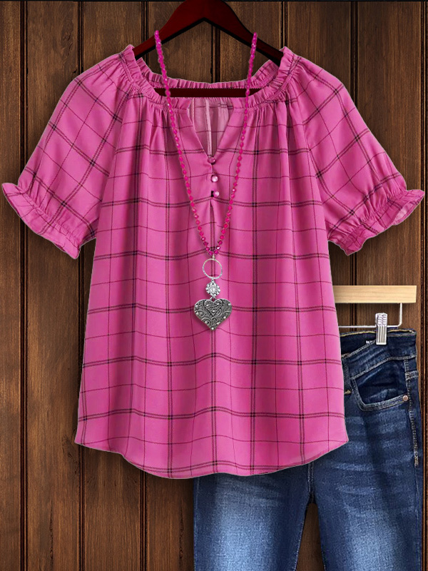 This Plaid Shirred Puff Sleeve Top is a mix of southern charm and playful elegance, featuring classic plaid and shirred details, creating a timeless and playful look.