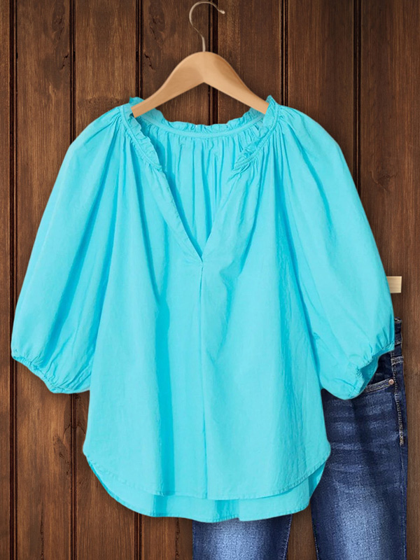 Make a statement with our Puff Sleeve Blouse in Blue. The bold and beautiful shade of blue coupled with the voluminous puff sleeves creates a striking and feminine look. The lightweight fabric ensures comfort all day long, while the flattering fit accentuates your silhouette.