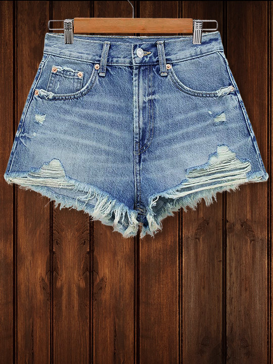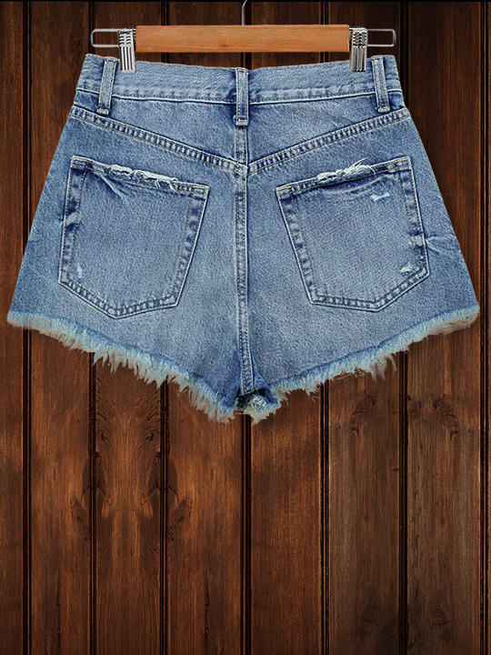 The denim short sits high on the waist to accentuate your best figure. Denim fabrics are softer and stretch better, providing excellent comfort while maintaining the appearance of denim. The shorts are moderately washed, distressed, naturally hand-sanded and whiskered. Denim fabrics have high elasticity and excellent styling effect.