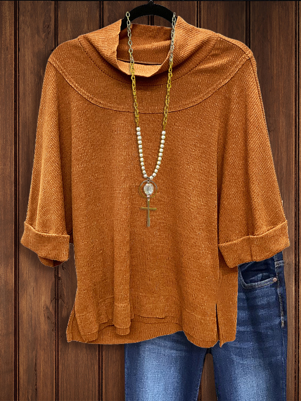 Stay cozy and stylish with our Ribbed Knit Top in Rust Brown. This versatile top features a ribbed knit texture and a warm rust brown color. Made from soft and stretchy fabric, this top is perfect for layering or wearing on its own. Pair it with jeans or leggings for a comfortable and trendy look.