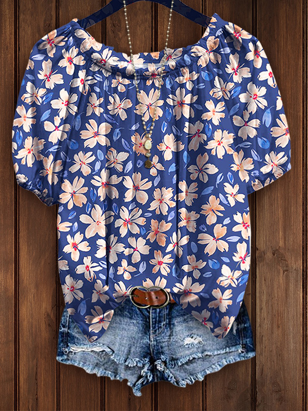 This is a great piece for summer. The floral print design adds a touch of playfulness and charm. The elastic collar design can be off-shoulder or round-necked, which is both beautiful and practical. Wear yours with blue denim shorts for beach vacations or everyday outings.