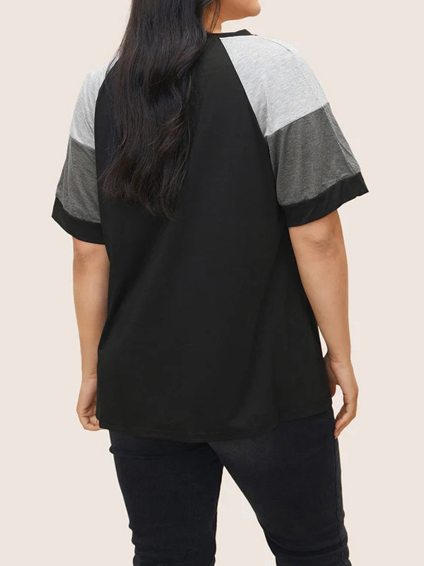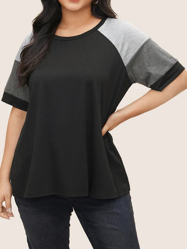 The top incorporates contrast color elements adding depth and a modern twist to the solid hue. The contrast color create a striking visual effect that draws attention and enhances the overall aesthetic. The raglan sleeve design is characterized by a diagonal seam from the underarm to the neckline creating a sporty and relaxed look.
