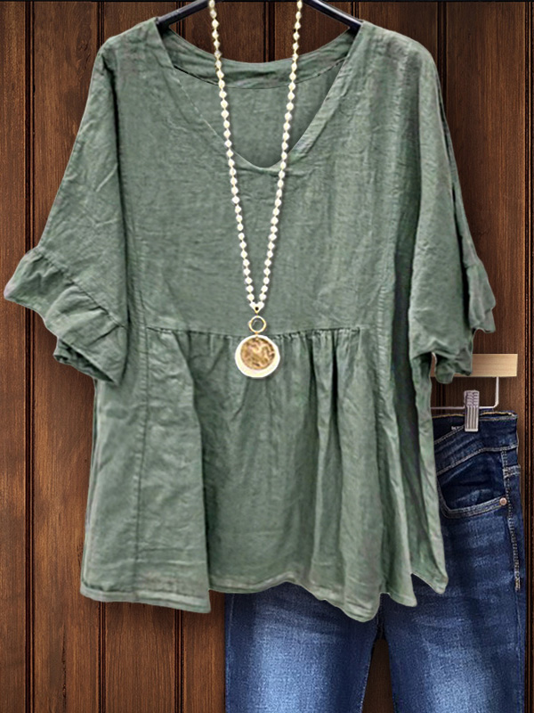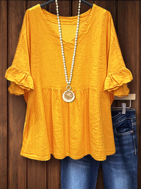 This top is made from soft, breathable cotton linen. It's finished with sweet ruffle detailing for a chic feel and is cut for a loose fit. Pair it with your favorite summer denim shorts; I'm sure it'll become your new favorite!