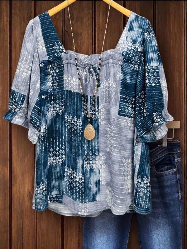 Stand out from the crowd in this square-neck printed casual top. The unique tie-up square collar adds a touch of playfulness, while the retro block print makes a statement. The fit is relaxed and relaxed, so pair it with high-waisted jeans or casual shorts for a chic yet stylish look.