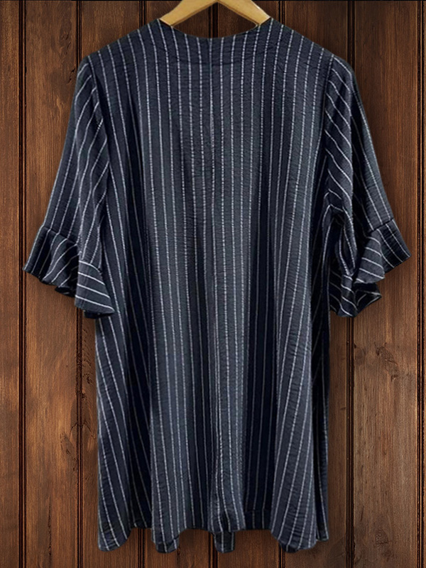 Featuring a vertical stripe print and pleated textured fabric, this dress looks casual yet chic. The ruffled sleeves feature a mid-sleeve length and a relaxed fit, perfect for hanging out with friends or a fun, comfortable weekend.