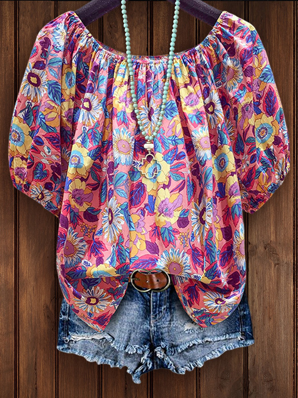 This is a great piece for summer. The floral print design adds a touch of playfulness and charm. The elastic collar design can be off-shoulder or round-necked, which is both beautiful and practical. Wear yours with blue denim shorts for beach vacations or everyday outings.