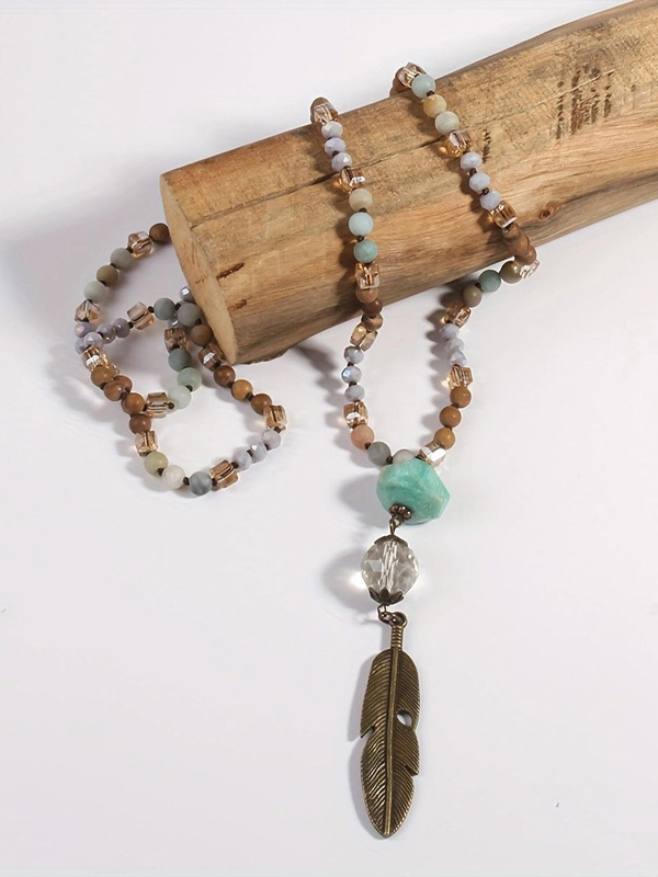 Featuring a feather pendant and heathered glass beading details, this tribal-inspired necklace makes a statement and is perfect for adding an exotic and vintage feel to your overall look.