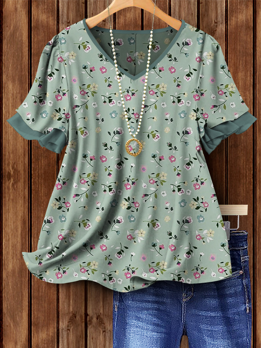 This top is made of a soft and breathable cotton blend. The floral print and sweet ruffles add a touch of chic, and the loose fit makes it so versatile that I'm sure it will become your new favorite!