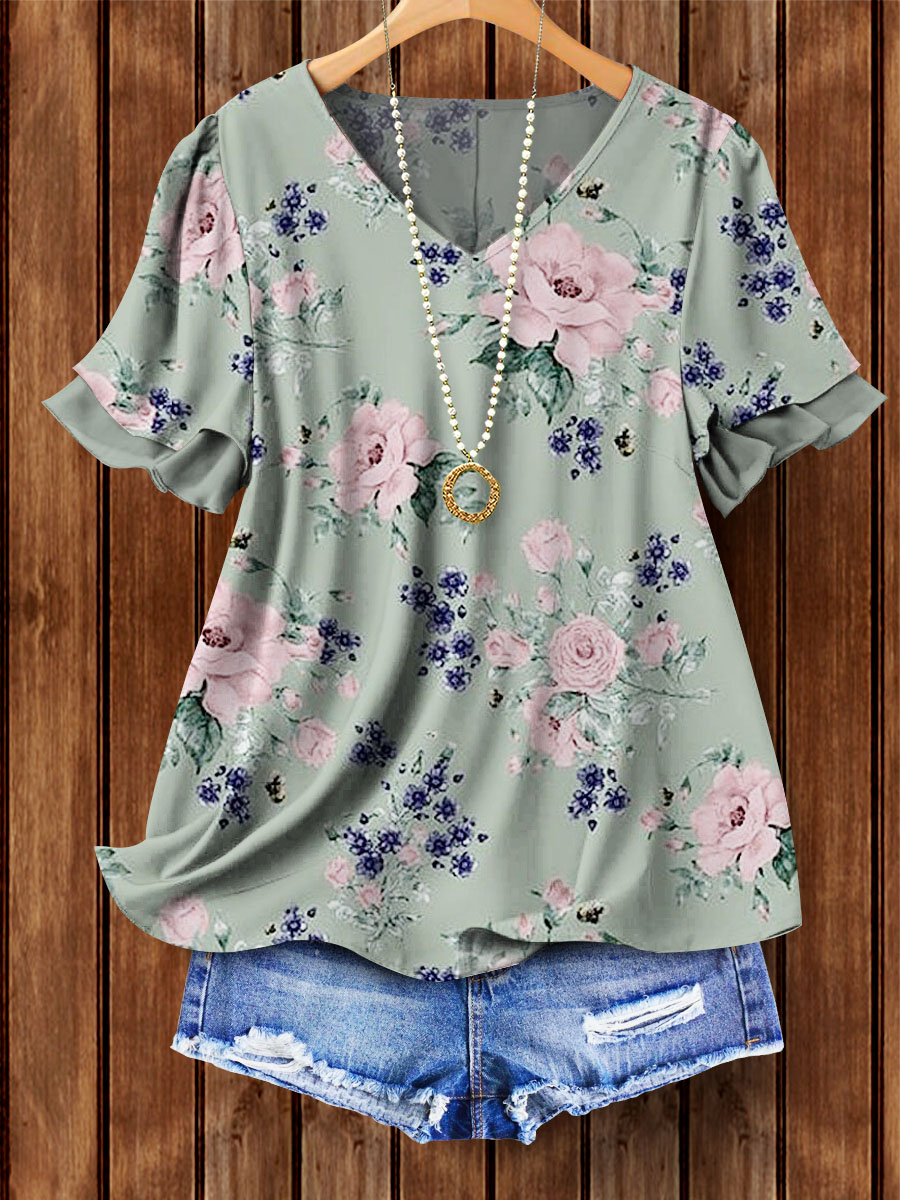 This top is made of a soft and breathable faric. The Retro print and sweet ruffles add a touch of chic, and the loose fit makes it so versatile that I'm sure it will become your new favorite!