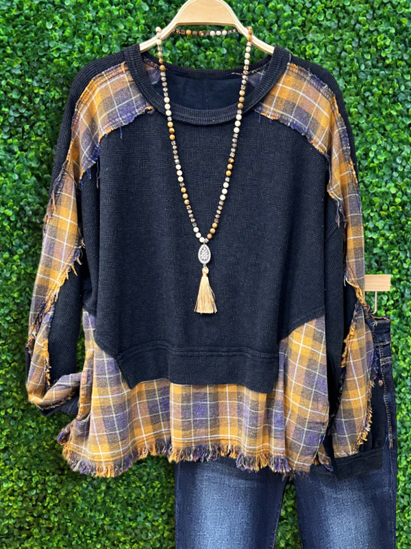 Upgrade your casual wardrobe with our Washed Waffle Plaid Out Pullover! This pullover features a trendy waffle texture and a plaid pattern, giving it a unique and stylish look. The washed effect adds a vintage touch to the design. With its relaxed fit and comfortable fabric, this pullover is perfect for everyday wear. Pair it with jeans or leggings for a laid-back yet fashionable outfit.